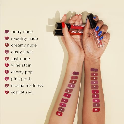 BELLAVITA Kiss-Proof Liquid Lipstick | 3.8 ml | 18-hr Stay | Transferproof Lipstick | Long Lasting | Ultra Matte Finish | Intense Moisturisation | Waterproof Liquid Lipsticks for Women | Cherry Pop