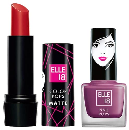 Elle 18 Elle 8 Lipstick Maroon Silk (Matte)&Elle18 Matte, Glossy Finish Nail Pops Color 161, 161, 5 Ml