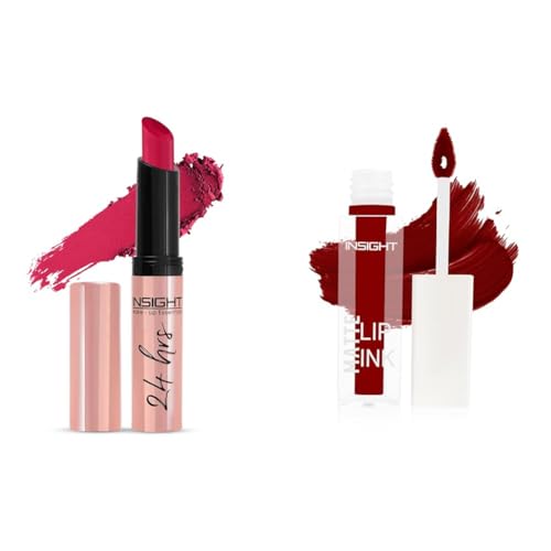 Insight Cosmetics 24 Hrs Non Transfer Matte Lipstick |Matte Finish |Lightweight Lipstick |Lasts For 24Hrs |Nourishes Lips & Great For Daily Use |Highly Pigmented(LL03-23)INSIGHT NON-TRANSFER LIPSTICK FEATURES A CREAMY NON-DRYING AND WATER-RESISTANT FORMULA THAT SETTLES TO AN OPAQUE MATTE FINISH WITHIN FEW MIN. THIS LIPSTICK FEATURES A TWO-IN-ONE FORMULA THAT COMBINES INTENSE PIGMENTS WITH A NONTRANSFERABLE FORMULA THAT LOCKS IN COLOR AND PROVIDES A COMFORTABLE WEAR ALL DAY. THIS TRANSFER-PROOF LIPSTICK FEATURES A PLUSH PIGMENT-RICH FORMULA. THIS PIGMENT RICH LIPSTICK DELIVERS INTENSE COLOR PAY-OFF IN JUST A SINGLE SWIPE. AVAILABLE IN RICH AND LONG-LASTING COLORS. ENRICHED WITH EMOLLIENTS LIKE VITAMIN E WHICH PROVIDES MOISTURIZATION.THIS PRODUCT IS FREE FROM MINERAL OIL AND PARABENS.INSIGHT COSMETICS MATTE LIP INK(LG43-01)THE INSIGHT MATTE LIP INK IS PACKED WITH PIGMENTS AND NEARLY WEIGHTLESS FORMULA GIVING YOU BRIGHT BOLD AND BEAUTIFUL LIPS THAT LAST ALL DAY LONG. IT IS QUICK DRYING AND DELIVERS AN INTENSE SHOT OF MATTE PIGMENT IN ONE EASY SWIPE. IT IMPARTS A SHOCK OF COMFORTABLE COLOR THAT WON'T BLEED OR TRANSFER. THIS HIGHLY PIGMENTED LIQUID LIP INK COMES WITH A UNIQUE ARROW APPLICATOR FOR PRECISE APPLICATION AND INTENSE COLOR DISTRIBUTION. IT ALSO HAS WATERPROOF NON-TRANSFER LONG LASTING FORMULA.
