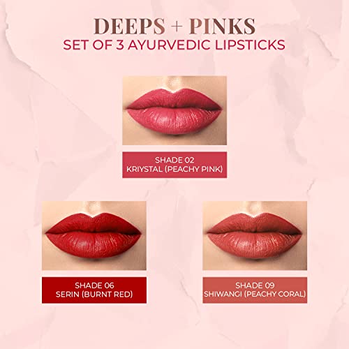 Just Herbs Ayurvedic Creamy Matte Half-Size Lipstick Kit - Peachy Pink Coral & 1.8gm x 3