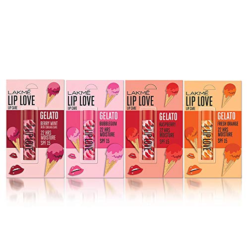 New Lakme Lip Love Gelato Collection â A bright Gelato treat for your soft and smooth lips all day! Experience Gelato inspired colors on your lips with NEW Lakme Lip Love Lip Care Gelato Collection. It gives your lips a bright pop of Gelato-inspired colors and fragrance along with 22 HR non-stop moisturisation so you can say bye to dry with soft lips that last all day. It has SPF 15 that helps protect your lips from the harmful rays of the sun. New Lakme Lip Love GELATO collection is super moisturizing formula in a convenient and vibrant pack Get intense lip care with just the right touch of color chose from 4 vibrant shades in red pinks and orange to suit every mood. One quick swipe and you can seal in the moisture to get soft lips all day. Choose from vibrant shades: Berry Mint Bubblegum Raspberry Fresh Orange HOW TO APPLY Your everyday easy guide to soft lips: Step 1: Uncap the stick Step 2: Twist open the pack such that the bullet comes out Step 3: Roll the bullet across your lips starting from the edges to the centre Step 4: Flaunt soft moisturized lips for 22 hrs