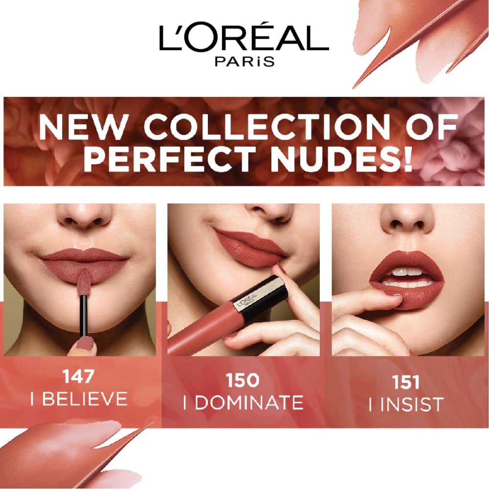 L'Oreal Paris Lipstick Liquid Format with Matte Finish Oil-In-Water Formula Breathable and Lightweight Feel Non-Flaking Colour: 116 I Explore 7ml