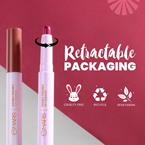 MARS Double Trouble 2-in-1 Retractable Lip Crayon | Long Lasting | Matte finish | Smudge proof & Kiss Proof Lipstick for Women (4.0 gm) (05-Bubblegum-Mocha)