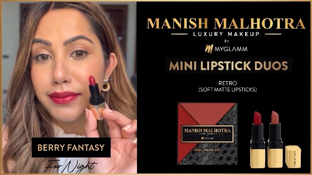 Own every occasion from AM to PM with Manish Malhotra Afterparty Hi-Shine Mini Lipstick Set. Its high-pigment lustrous formula adds another dimension to your lips while providing UVB protection. The smooth texture glides like decadent butter delivering a head-turning pout. Featuring two bold shades â English Rose and Ruby Runway â in a travel-friendly size for on-the-go glam. The duo comes in a premium colour-block box making it the perfect gift for your loved ones. So escape the ordinary and effortlessly create day-to-night looks with this mini lipstick set