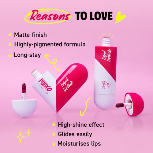 Popxo Liquid Lipstick & Lipgloss Love Kit - Situationships (Pink Shade) | Creamy Liquid Matte & Long Lasting Lipstick with High Shine Lipgloss