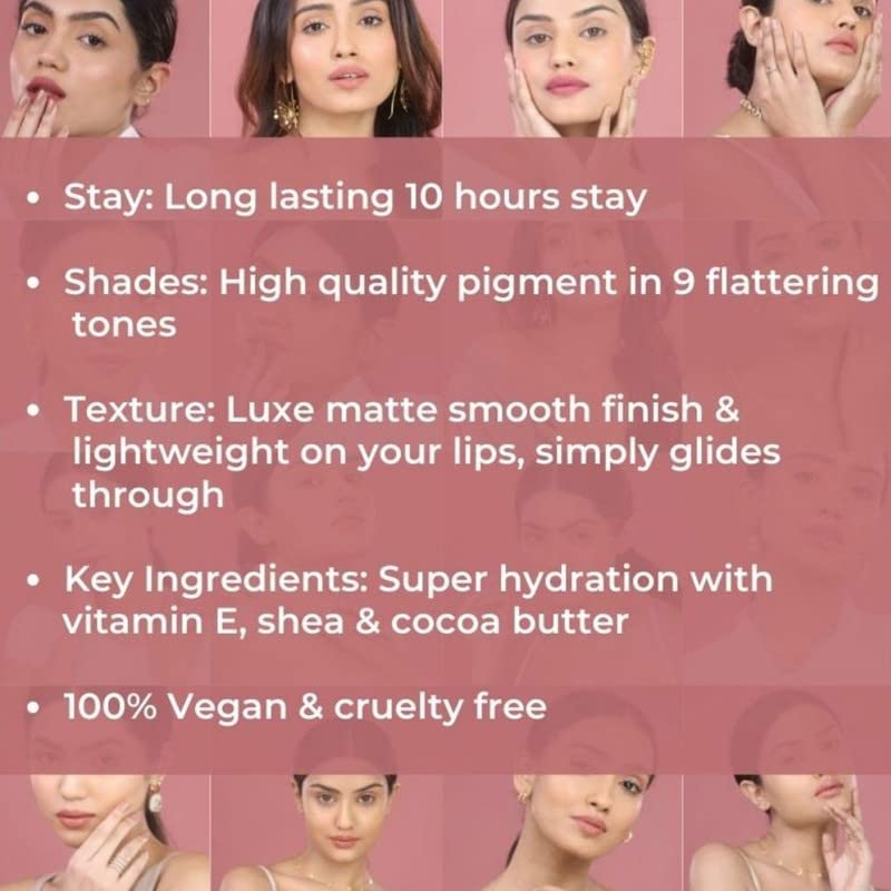 • Praush lipsticks are super hydrating and nourishing infused with vitamin e oil shea butter and cocoa butter they keep your lips moisturized.