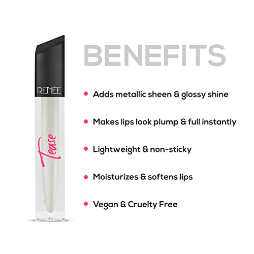 RENEE Tease Metallic Clear Lip Gloss with Plumping Effect, Long Lasting Hydration & Moisturization | Light Weight, Non Sticky & Non Drying Formula, 5ml