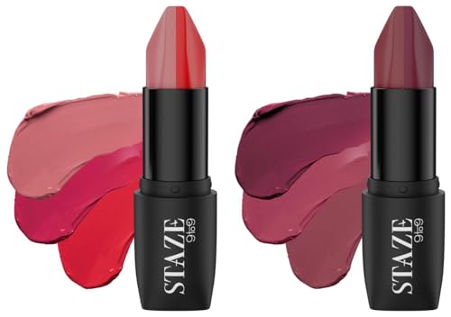 Staze 9To9 Love Tri-Angle 3 In 1 Matte Lipstick |3 Unique Shades In 1 | Transfer-Proof | 12 H Longstay | Non Drying Formula With Intense Color Payoff | 05 Truffle Blush | 3.8 GWhy settle for one when you can engage in a love triangle'? Introducing Staze 9to9 Love Tri-Angle 3-In-1 Lipstick a never-seen-before lippie with 3 game-changing shades in 1. It has a highly pigmented formula that delivers a super comfortable matte finish for 12 hours long. Enriched with Avocado Oil its lightweight texture hydrates and nourishes your pout. Our C-Lock TechnologyTM locks the color making it look fresh with no transfers at all. One Lipstick Three Possibilities! You can effortlessly switch your look from morning meetings to cocktail dinners in a single swipe.Staze 9To9 Love Tri-Angle 3 In 1 Matte Lipstick |3 Unique Shades In 1 | Transfer-Proof | 12 H Longstay | Non Drying Formula With Intense Color Payoff |02 Scarlet Whisper | 3.8 GWhy settle for one when you can engage in a love triangle'? Introducing Staze 9to9 Love Tri-Angle 3-In-1 Lipstick a never-seen-before lippie with 3 game-changing shades in 1. It has a highly pigmented formula that delivers a super comfortable matte finish for 12 hours long. Enriched with Avocado Oil its lightweight texture hydrates and nourishes your pout. Our C-Lock TechnologyTM locks the color making it look fresh with no transfers at all. One Lipstick Three Possibilities! You can effortlessly switch your look from morning meetings to cocktail dinners in a single swipe.