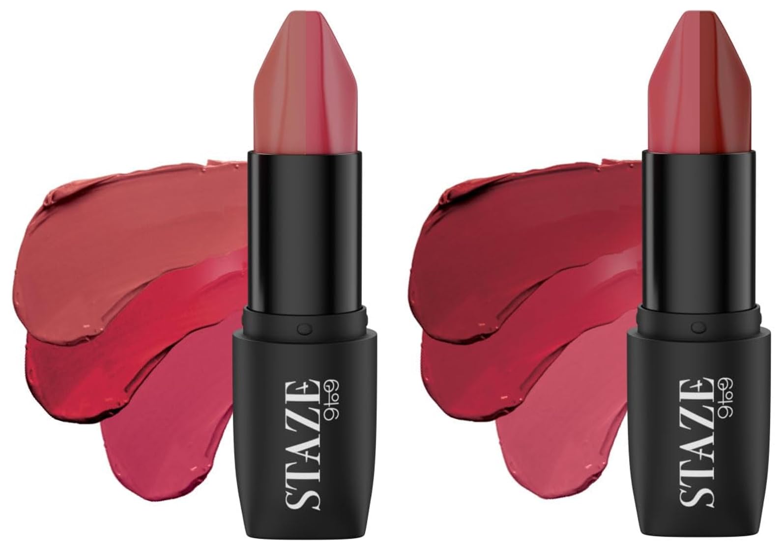 Staze 9To9 Love Tri-Angle 3 In 1 Matte Lipstick |3 Unique Shades In 1 | Transfer-Proof | 12 H Longstay | Non Drying Formula With Intense Color Payoff | 03 Caramel Rose | 3.8 GWhy settle for one when you can engage in a love triangle'? Introducing Staze 9to9 Love Tri-Angle 3-In-1 Lipstick a never-seen-before lippie with 3 game-changing shades in 1. It has a highly pigmented formula that delivers a super comfortable matte finish for 12 hours long. Enriched with Avocado Oil its lightweight texture hydrates and nourishes your pout. Our C-Lock TechnologyTM locks the color making it look fresh with no transfers at all. One Lipstick Three Possibilities! You can effortlessly switch your look from morning meetings to cocktail dinners in a single swipe.Staze 9To9 Love Tri-Angle 3 In 1 Matte Lipstick |3 Unique Shades In 1 | Transfer-Proof | 12 H Longstay | Non Drying Formula With Intense Color Payoff | 01 Brick Pink | 3.8 GWhy settle for one when you can engage in a love triangle'? Introducing Staze 9to9 Love Tri-Angle 3-In-1 Lipstick a never-seen-before lippie with 3 game-changing shades in 1. It has a highly pigmented formula that delivers a super comfortable matte finish for 12 hours long. Enriched with Avocado Oil its lightweight texture hydrates and nourishes your pout. Our C-Lock TechnologyTM locks the color making it look fresh with no transfers at all. One Lipstick Three Possibilities! You can effortlessly switch your look from morning meetings to cocktail dinners in a single swipe.