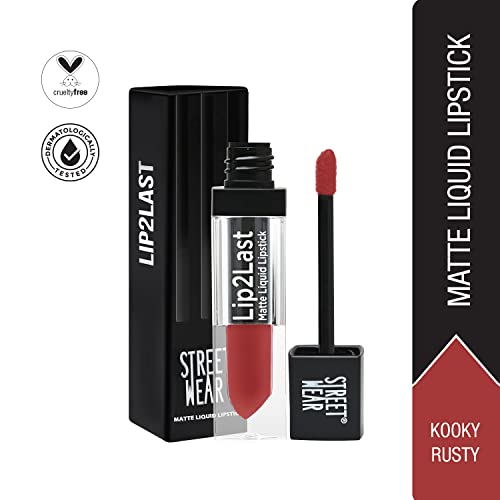 STREET WEAR Lip2Last Matte Liquid Lipstick -Kooky Rusty (Red) - 5 ml - Transferproof, Smudgeproof, Mask Friendly, Non-Drying Formula, Enriched With Vitamin E - Lasts AM To PM!