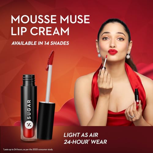 • AIRY-LIGHT MOUSSE TEXTURE: Fall in love with the super lightweight yet intensely pigmented mousse texture that hugs your lips in rich colour. Attain a picture-perfect pout with SUGAR Mousse Muse Lip Cream that glides on effortlessly and veils your lips wi