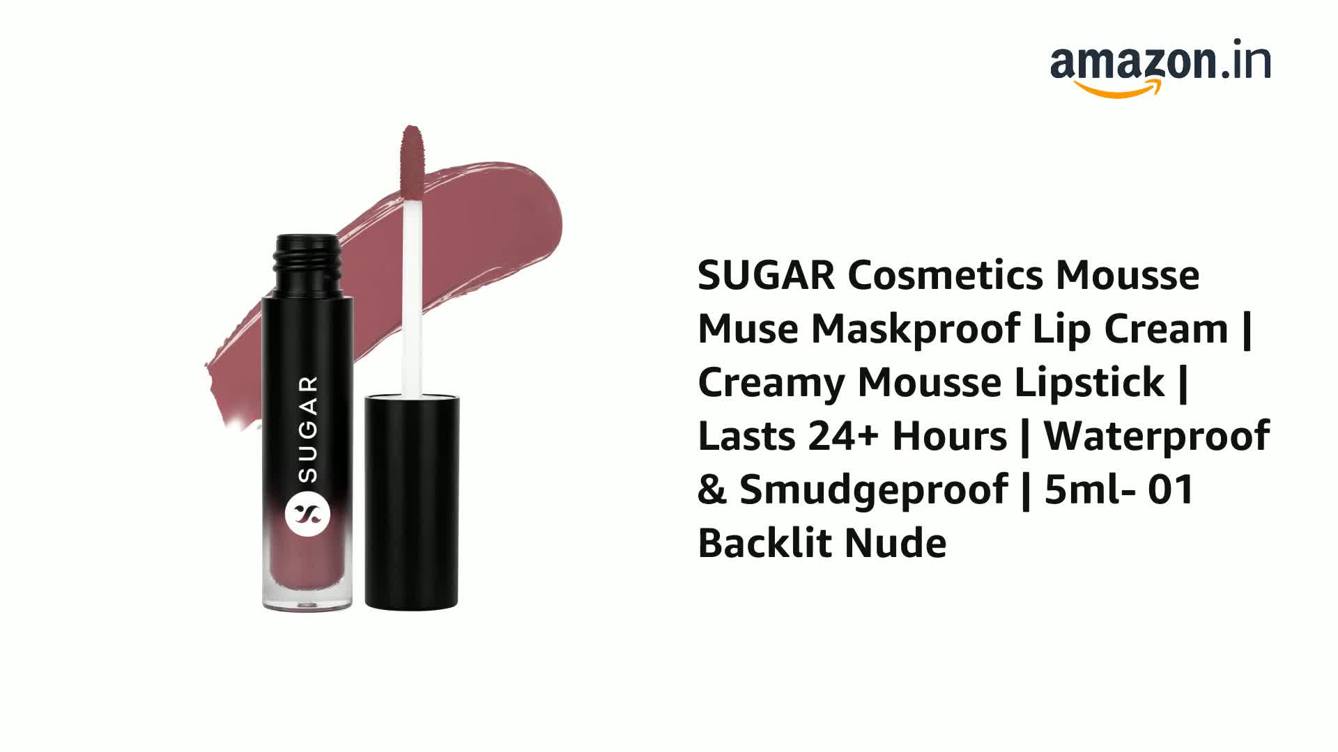 SUGAR Cosmetics Mousse Muse Lip Cream | Lasts 24+ Hrs | Creamy Mousse Lipstick | Waterproof & Smudgeproof | 5ml - 01 Backlit Nude
