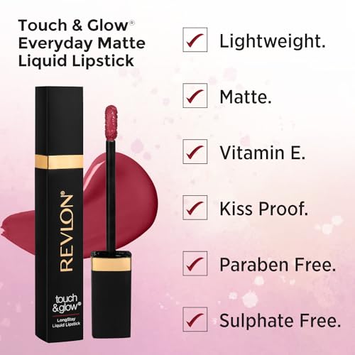 Revlon Touch & Glow Everyday Matte Liquid Lipstick|Lightweight, Transferproof, Kiss Proof, Non Sticky infused Vitamin E|Parabeen & Sulphate free -Pink Princess