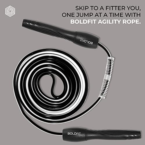 Boldfit Skipping Rope for Men and Women Jumping Rope With Adjustable Height Speed Skipping Rope for Exercise Gym Sports Fitness Adjustable Jump Rope Polyvinyl Chlorine (PVC) Black-White