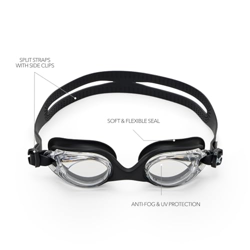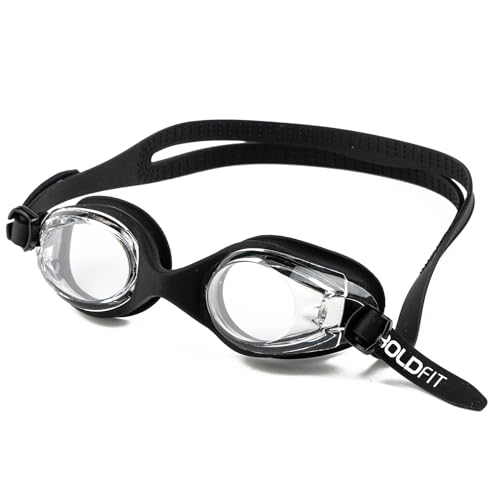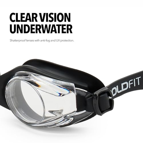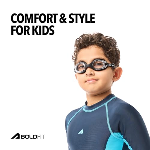 Boldfit Swimming Goggles for Kids, Boys With Adjustable Strap, UV Protection, Air Tight Antifog Goggles for Girls for Kids - Black, Silicone, Polycarbonate