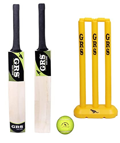 GRS Kids Zone Popular Willow Cricket Bat with Wicket Set & 1 Tennis Ball for Kids (Size 3 Age 6-10 Year Old Kids) Multicolor