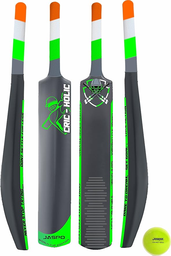 Jaspo Cric-Holic Senior Plastic Cricket Full Size Bat (34 X 4.5 Inch) for All Age Group with Soft Cricket Ball Combo