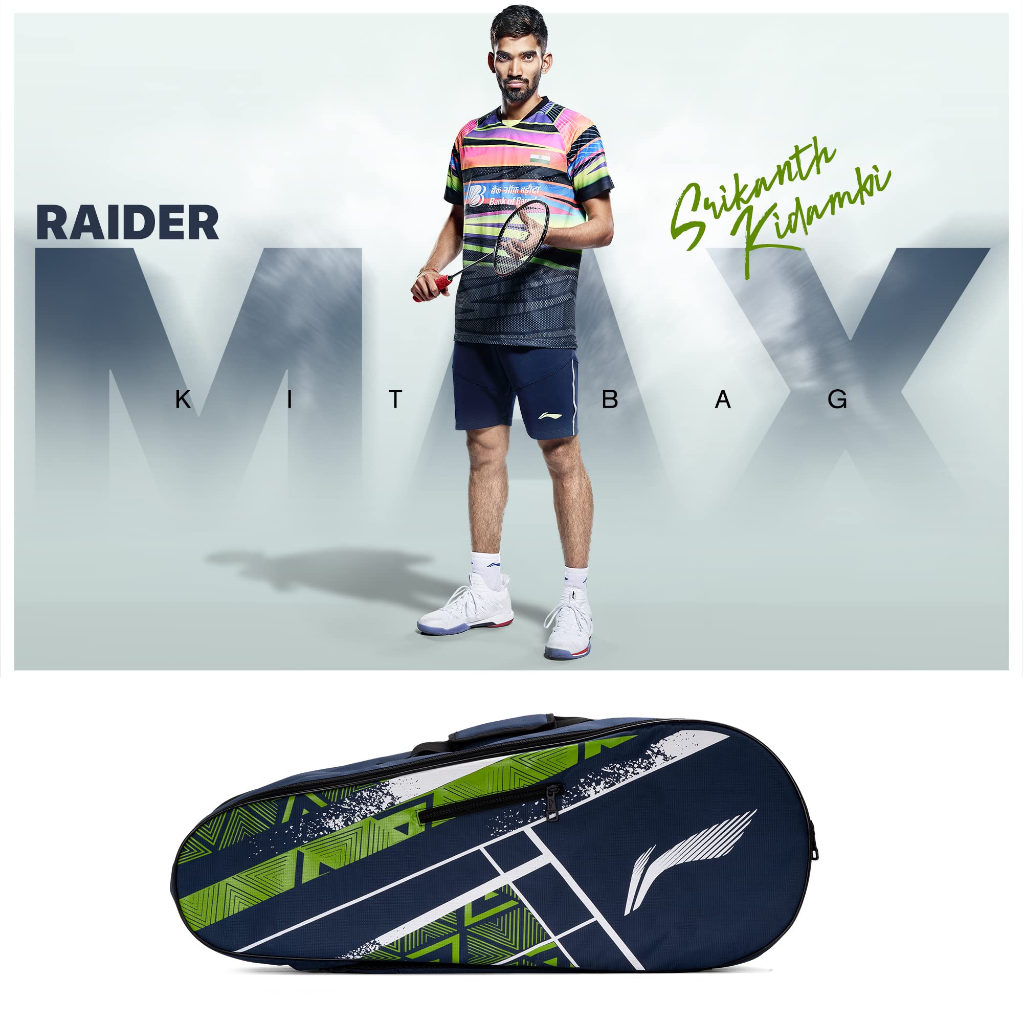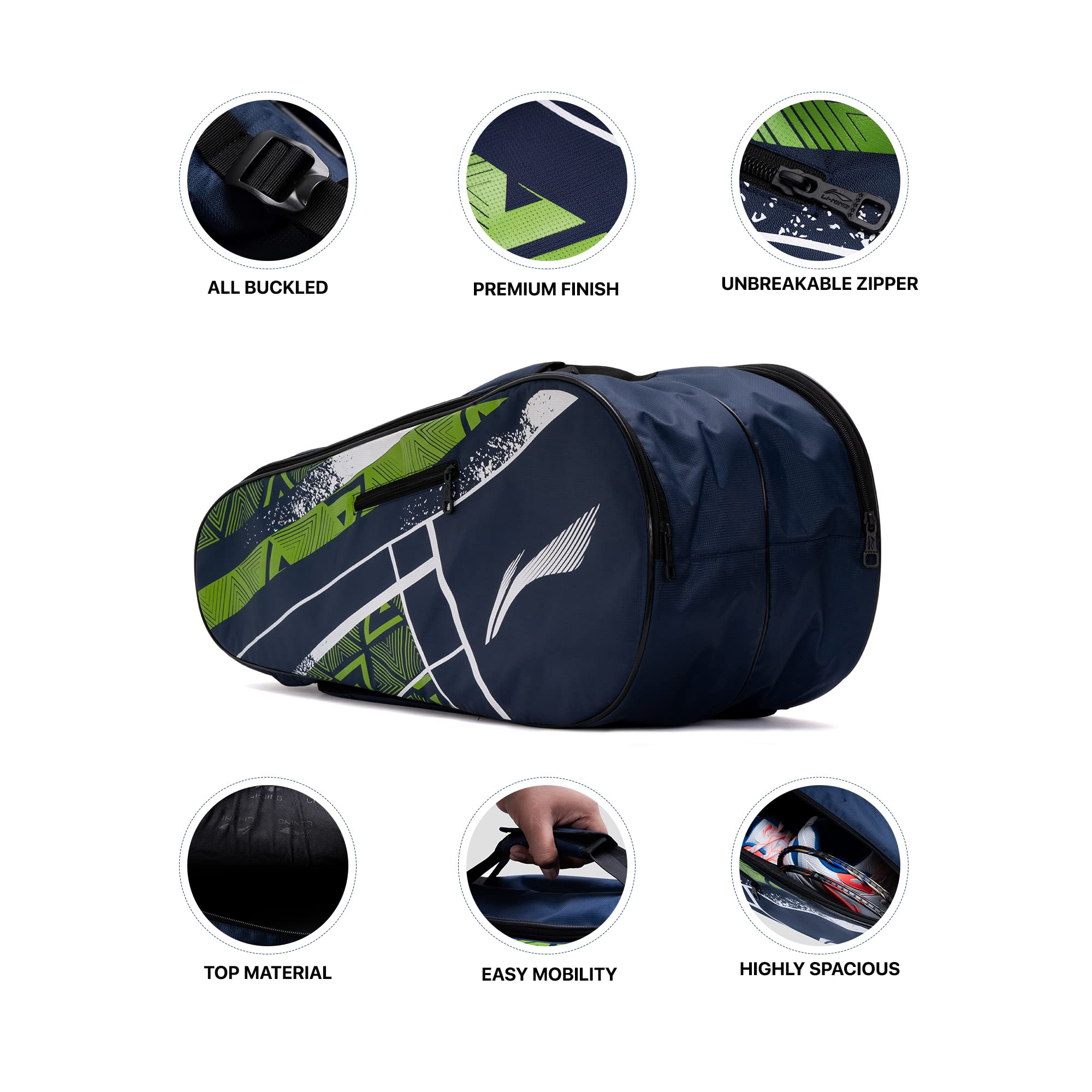 Li-Ning Raider Max Double Zipper Polyester Badminton Kit Bag | Unbreakable Zippers | Easy Mobility | Unisex - Men, Boys, Girls, Women