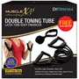 MuscleXP DrFitness+ Double Toning Tube Latex Tube Body Enhancer for Women & Men with Door Anchor Workout Home Gym and Toning for Arms Legs Shoulders (Black)