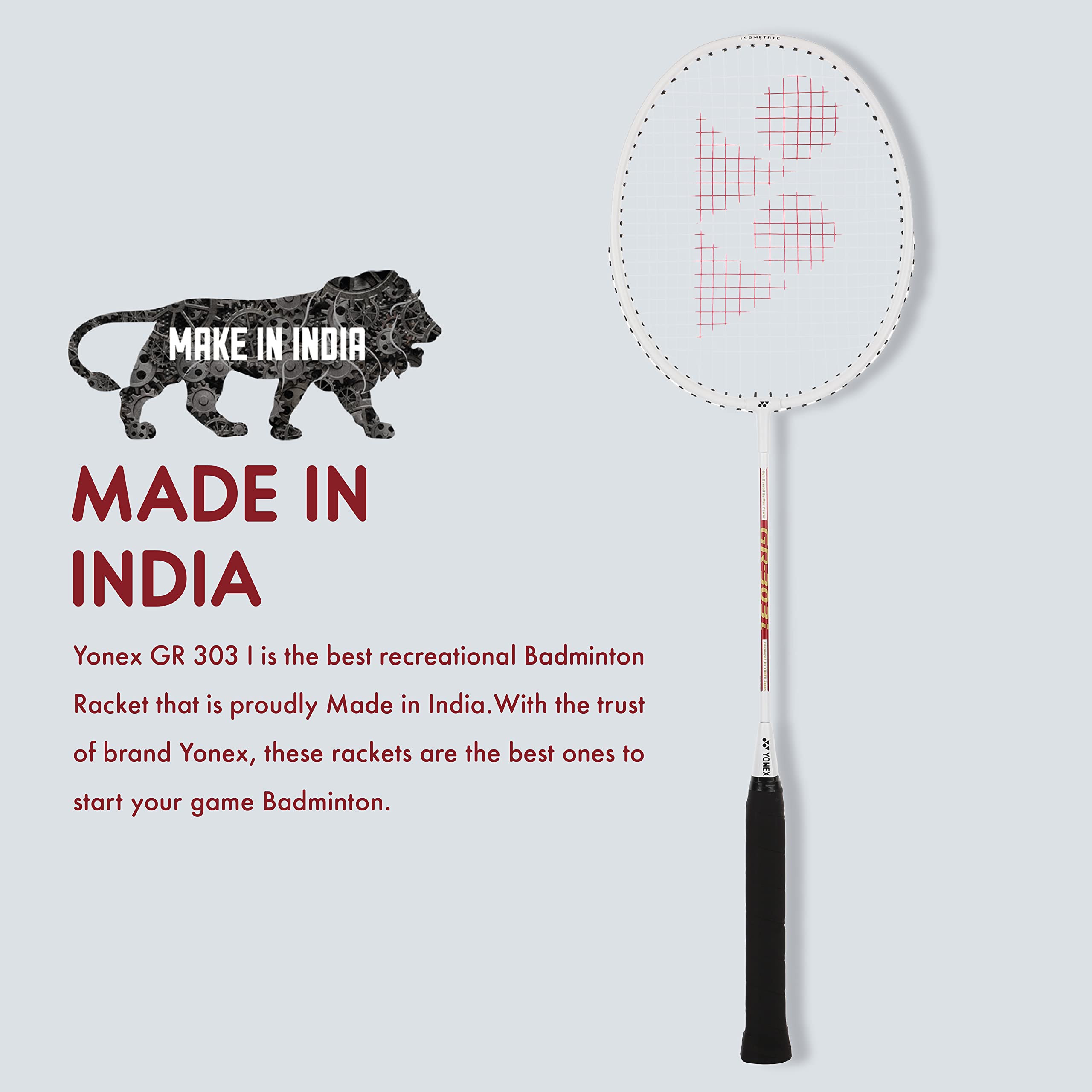 YONEX GR 303i Aluminium Strung Badminton Racket with Full Racket Cover (White) | for Beginners | 83 Grams | High Durability