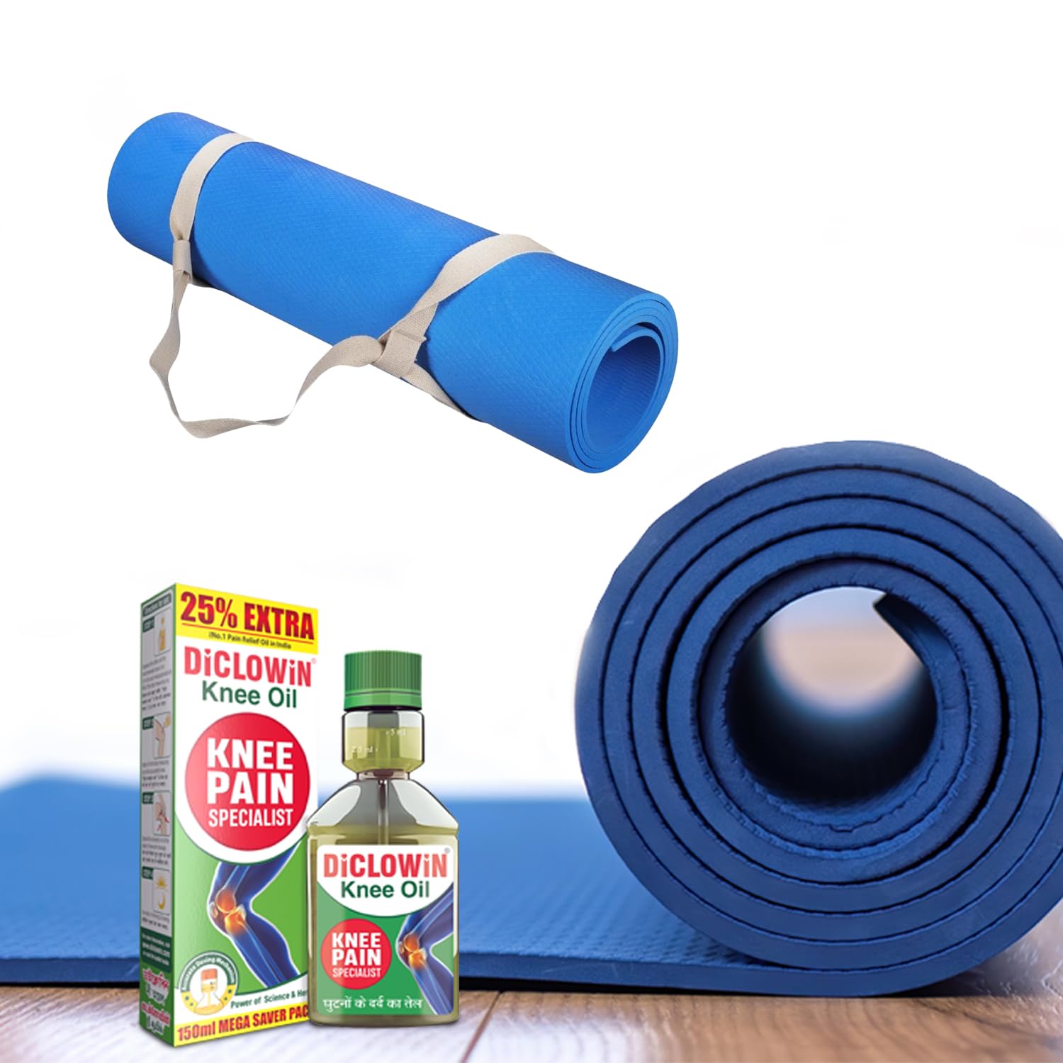 DiCLOWiN Yoga Combo: Knee Pain Oil (150ml) + Anti-Slip Yoga Mat for Seniors (6mm) | Joint & Arthritis Relief with Deep Penetrating Action | Exercise Stretch and Rest with Lasting Comfort & Mobility