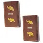 Made from fine quality sheesham wood long lasting and durable can be a wonderful gift item attractive and vintage looks hand carved brass elephant design. Recommended for those who like to smoke in style we are precise about the product's quality and our handicrafts products are handmade also due to the natural qualities of wood and due to different monitor settings and lighting during photo shoot the finished products may vary a bit from the images displayed. Set of 2 pocket cigarette cases brass ele. Hand crafted. Dimensions (in inches): 3x1x4.5''