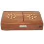 Wooden Pocket Cigarette Case Holder Stand Hand Carved Brass Flower Handicraft
