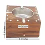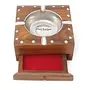 Antique Wooden and brass cigaratte Ash tray Made from quality Sheesham wood contains Cigarette cigar lighter holder. The design of this Ash Tray will enhance the beauty of the place where it is kept. And it a alluring gift Item. A drawer like storage space at the bottom enables you to store your cigarettes. A pure wood color is used in the design so you won't have to worry about the color of ash ruining its beauty. Made by rural artists of India all are hand made so some imperfection might occur.Size - 4.5 x 4.5 x 2.2 inch Color-Brown Care Instructions - Clean With Dry Cloth.
