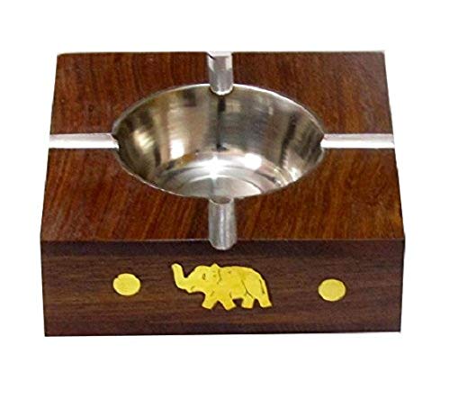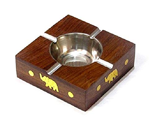 Handmade Beautiful Designer Square Shaped Wooden Ashtray with Inlay Work