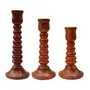 BIJNOR - METAL INLAY IN WOOD Wood Candle Holder Stand Pack of 3