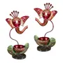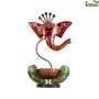 CHURU SILVERWARE Ganesha Handcrafted Metallic Tea Light Holder Set -Red or Black (Auspicious Red)
