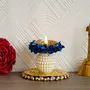 Divyakosh Multicolour Pearl Matki Decoration Candle Holders/Rangoli Tealights for Puja Decor|Tealights Lotus Diya for Pooja Festival Decor|Lotus Deepam (Blue 10)