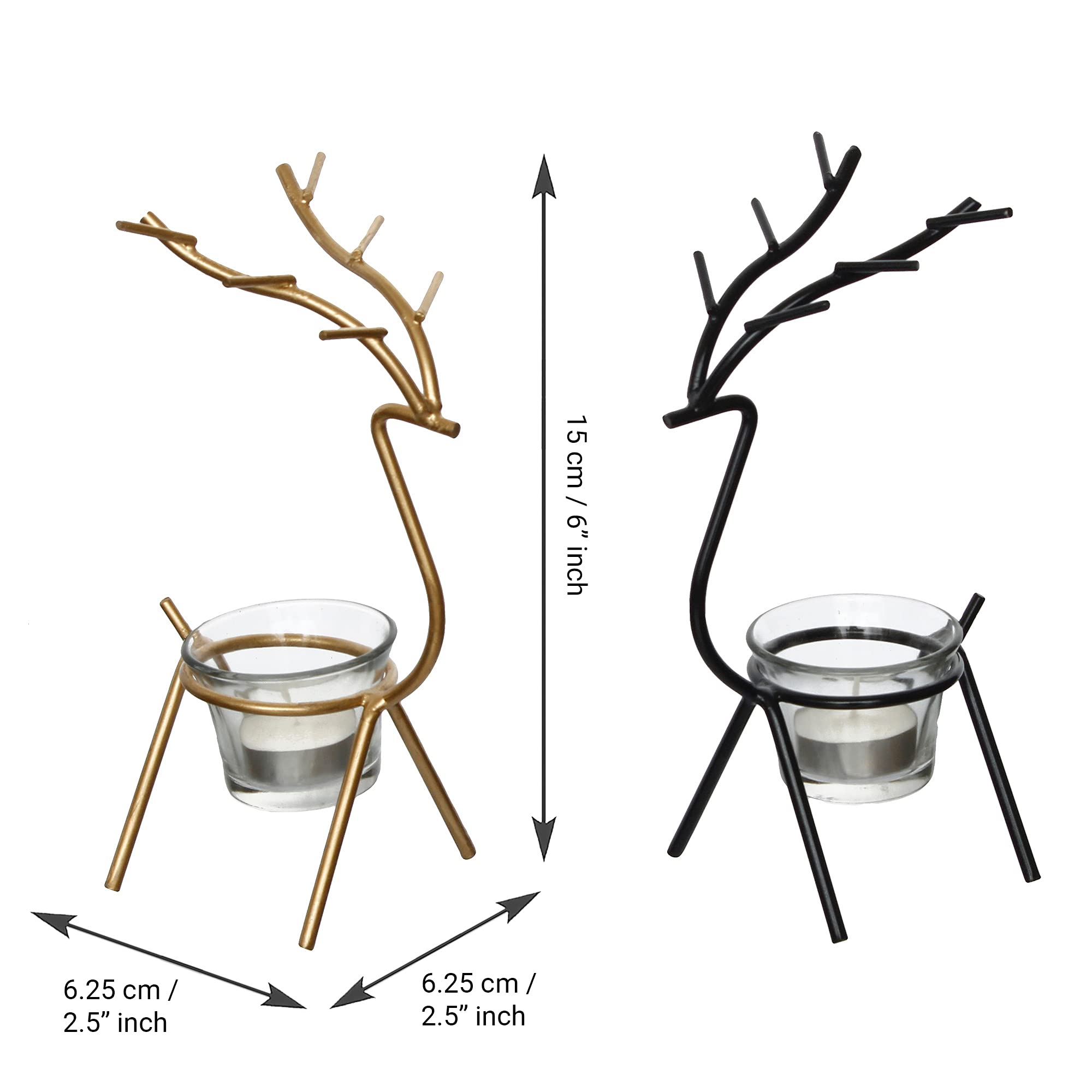 HomeHomeHome AccentCandle & Candle HoldereCraftIndia Set of 2 Black Golden Metal Deer Shape Decorative Tea Light Candle Holders- T Light Candle Holders- Tea Light Holders Diwali Decoration Items for Home Decor Gift for Diwali Housewarming