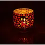 Brahmz offers you a beautiful mosaic glass tea light candleholders. These are completely hand made with small glass pieces assembled in mosaic style. Place a tea light candle inside this votive and let glow of the vibrant rays create a peaceful ambience in any room of the house