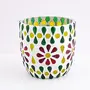 Brahmz offers you a beautiful mosaic glass tea light candleholders. These are completely hand made with small glass pieces assembled in mosaic style. Place a tea light candle inside this votive and let glow of the vibrant rays create a peaceful ambience in any room of the house