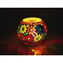 Brahmz offers you a beautiful mosaic glass tea light candleholders. These are completely hand made with small glass pieces assembled in mosaic style. Place a tea light candle inside this votive and let glow of the vibrant rays create a peaceful ambience in any room of the house
