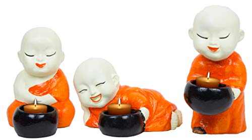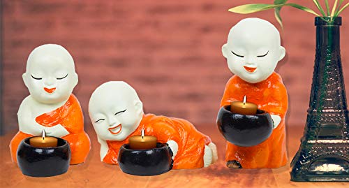 Handcrafted Poly-Resin Set of 3 Buddha Candle Holder Sculpture | Showpiece for Home Dcor and Office