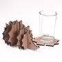 PACKAGE CONTENTS: Pack of 6 coasters and 1 holder cutouts for decoration Size: 7 in X 4 in X 4 in The coasters vary in size Colour: Brown