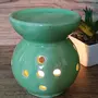 KHURJA POTTERY Ceramic Clay Candle Operated Aroma Burner Set of 2 Size 4 Inch Colour Red White Black Green (Green)