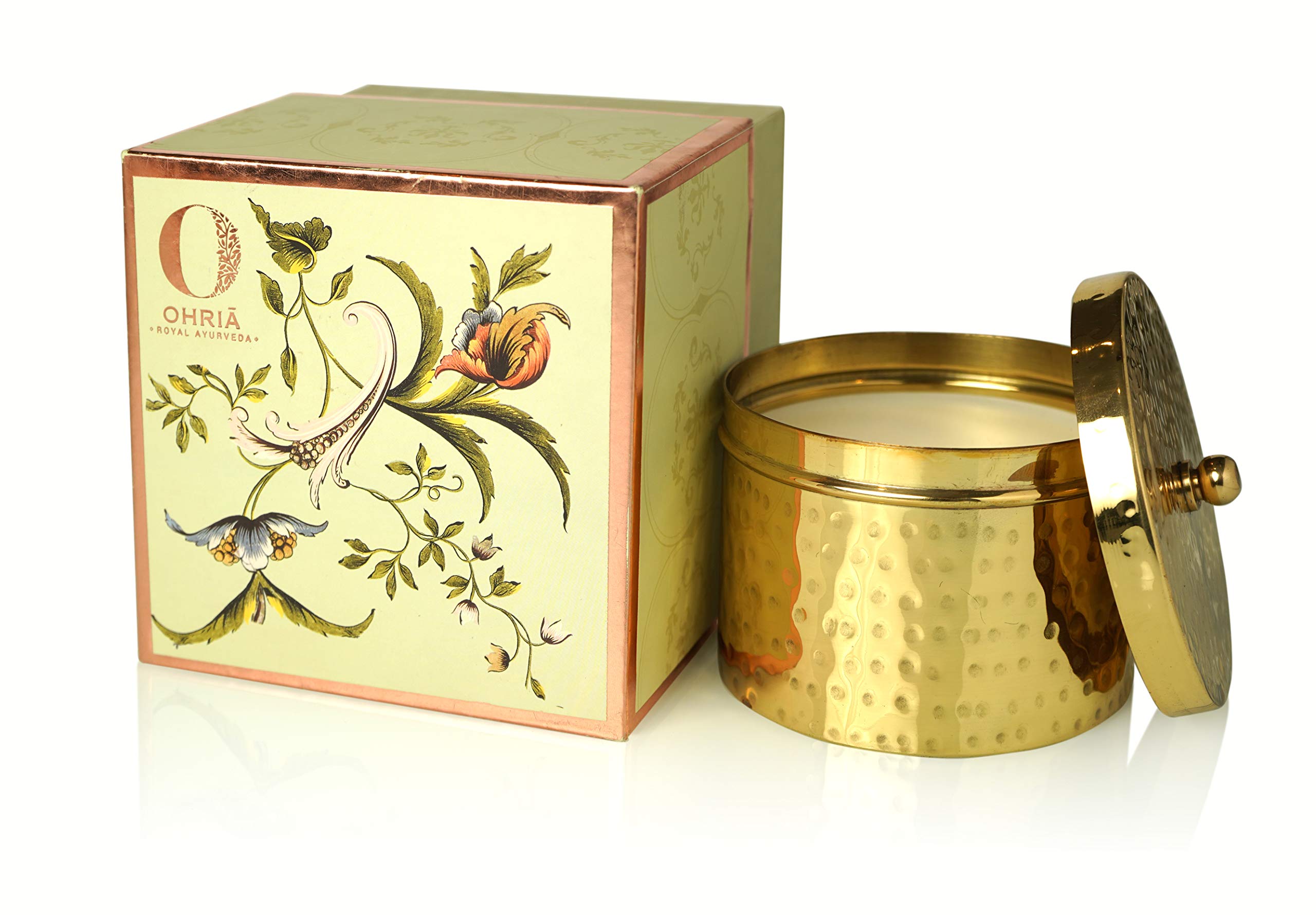 Ohria Ayurveda Raatrani and Mint Luxury Copper/Brass Candle, 410g