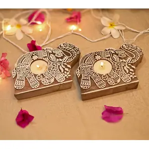 Wooden Elephant Tea Light Candle...