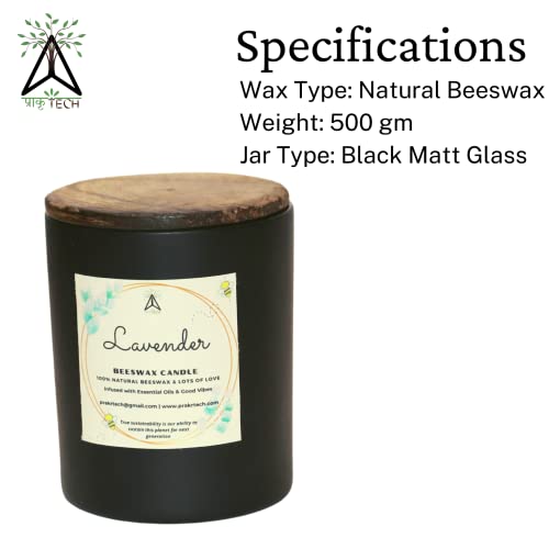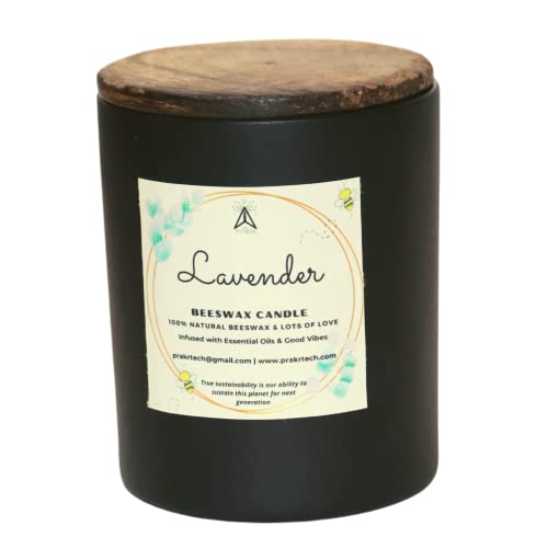 PRAKRTECH Cool Lavender Scented Beeswax Candle in Black Matt Glass Jar No Unhealthy Black Fumes