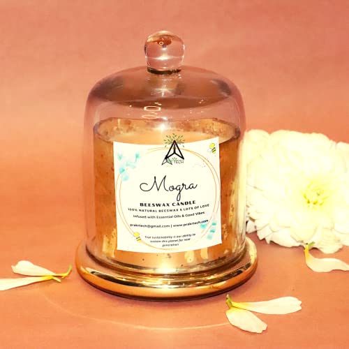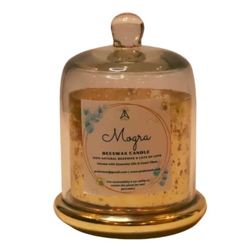 Natural Beeswax color Golden Bell Jar mogra scented candles made from other wax beeswax candles burn brighter and cleaner as they emit negative ions that are known to help purify the air.beeswax emits a sweet subtle honey-like fragrance. candles made with 100% natural & pure beeswax added with natural fragrances candles comes in a calm black matt glass jar with the sweet scent of mogra burn longer and cleaner than candles made with other waxes