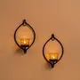 Set of 2 Decorative Black Eye Wall Sconce/Candle Holder with Yellow Glass and Free T-Light Candles