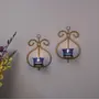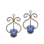 Set of 2 Decorative Golden Wall Sconce/Candle Holder with Blue Glass and Free T-Light Candles