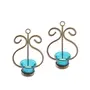 Set of 2 Decorative Golden Wall Sconce/Candle Holder with Turquoise Glass and Free T-Light Candles