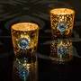 Vintage and beautiful light up this votive in your home and create an aura of mystique and tranquility. Let the candle flames entice you to another world. This exclusive Glass Votive is coated with Silver from inside and ted externally giving it regal touch and feel. In addition decorated with a Jewel Briich to enhance its beauty and vintage appeal. Simply light a wax Tea-Light inside.