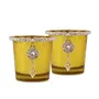 Vintage and beautiful light up this votive in your home and create an aura of mystique and tranquility. Let the candle flames entice you to another world. This exclusive Glass Votive is coated with Silver from inside and ted externally giving it regal touch and feel. In addition decorated with a Gold plated Jewel Ring and Dangler to enhance its beauty and vintage appeal. Simply light a wax Tea-Light inside and enjoy the look.