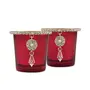 Vintage and beautiful light up this votive in your home and create an aura of mystique and tranquility. Let the candle flames entice you to another world. This exclusive Glass Votive is coated with Silver from inside and ted externally giving it regal touch and feel. In addition decorated with a Gold plated Jewel Ring and Dangler to enhance its beauty and vintage appeal. Simply light a wax Tea-Light inside and enjoy the look.