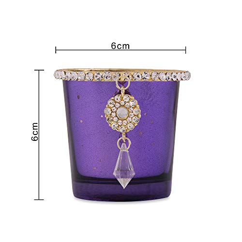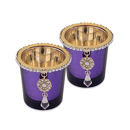 Vintage and beautiful light up this votive in your home and create an aura of mystique and tranquility. Let the candle flames entice you to another world. This exclusive Glass Votive is coated with Silver from inside and ted externally giving it regal touch and feel. In addition decorated with a Gold plated Jewel Ring and Dangler to enhance its beauty and vintage appeal. Simply light a wax Tea-Light inside and enjoy the look.